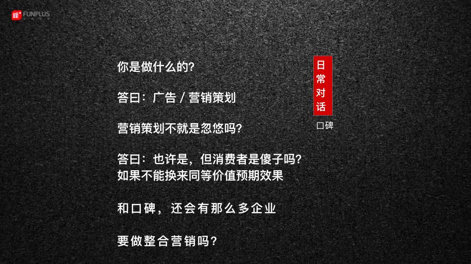 对于像是峰加这一类数字传播公司策略方案陷入套路固然可怕,但是没有套路的套路才更让人警惕;我们不排斥套路,但套路的出发点必须是基于自身独具价值特色的SOP。