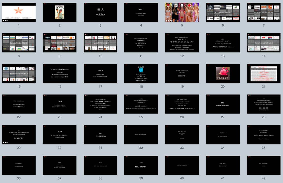 作为峰加唯一一个在2016年爱情事业双丰收的项目经理,这一套用罗曼蒂克烹制出来的PPT也的确羡煞旁人;空气中弥漫荷尔蒙的味道隔着十里花香似乎都能嗅到。