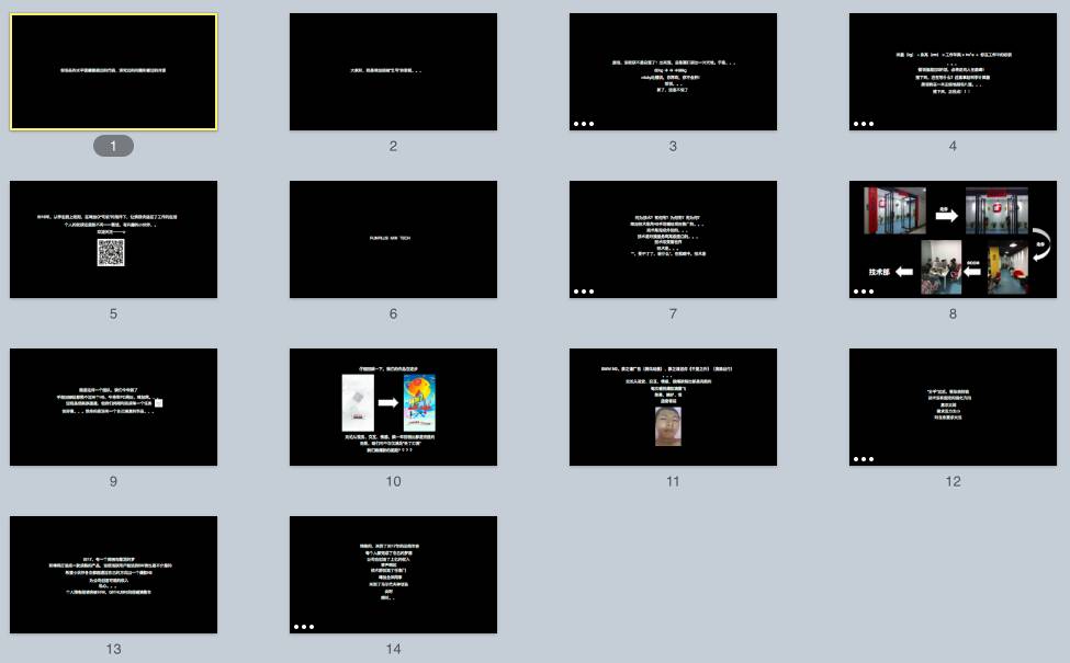 夸张的红色背景下,正好呼应了年中大会是的黑色主题;在红与黑的交织变幻之中何辉赛同学也终于开始慢慢有了一丝项目经理的“样子”: