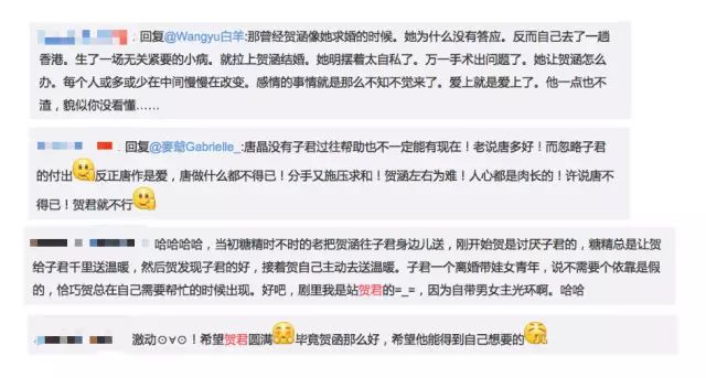 支持贺君在一起的人觉得,是唐晶亲手把罗子君推向了贺涵,而罗子君也是贺涵想要的。