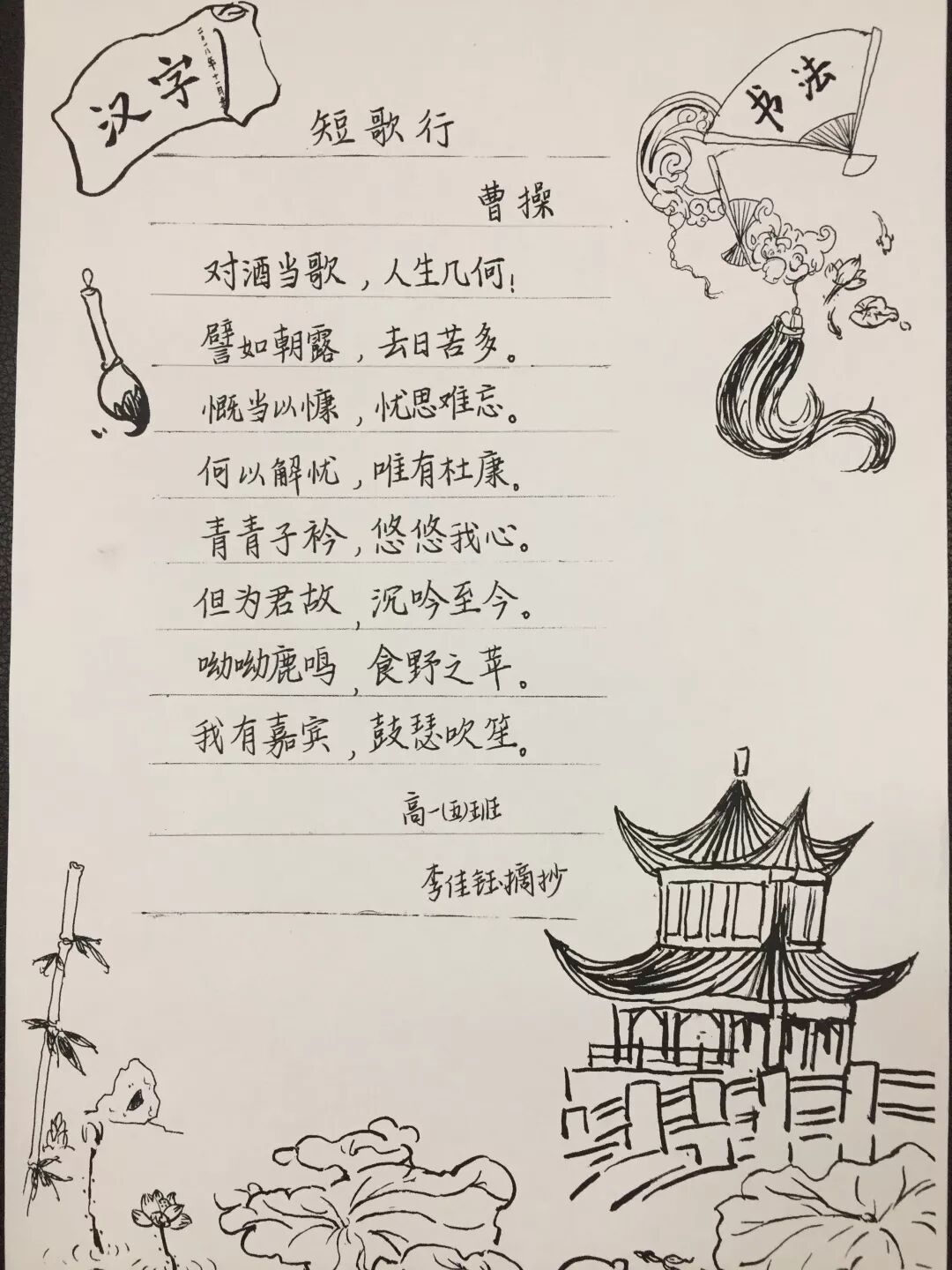 初冬虽冷冽,翰墨飘立德。同学们都积极参与书法比赛,倾心而为,笔墨淋漓,在此感谢美术班的周若君和周唯同学为本次比赛画了优美的边框。此外,老师们也饱含热情,精挑细选,最终选出学生的优秀书法作品(语文组32幅,英语组31幅),展其于壁墙之上。至此,本次中英书法比赛圆满结束。望同学们今后能够“书法有路勤为径,墨海无涯苦作舟。”