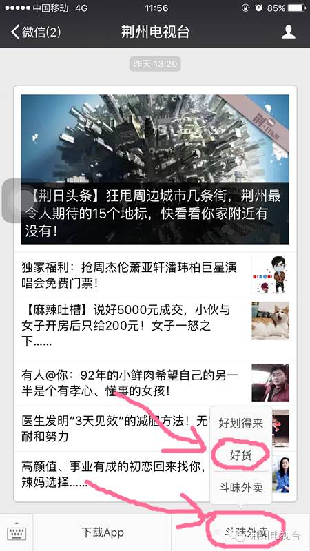 再进入微信,点击“斗味外卖”后,点击“好货”