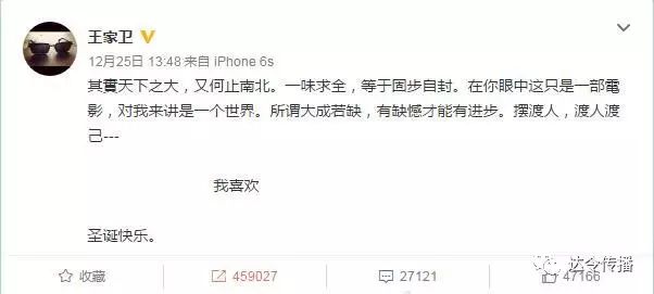 看来《摆渡人》的票房是完全不用担心了,毕竟半个娱乐圈都来帮着王家卫买票了,要说电影宣传除了冯小刚导演,我还服王家卫。