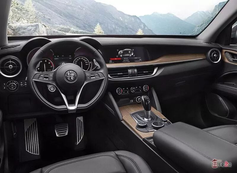 Stelvio的内饰以黑色为主调,整体风格大气简约,但又不失动感。