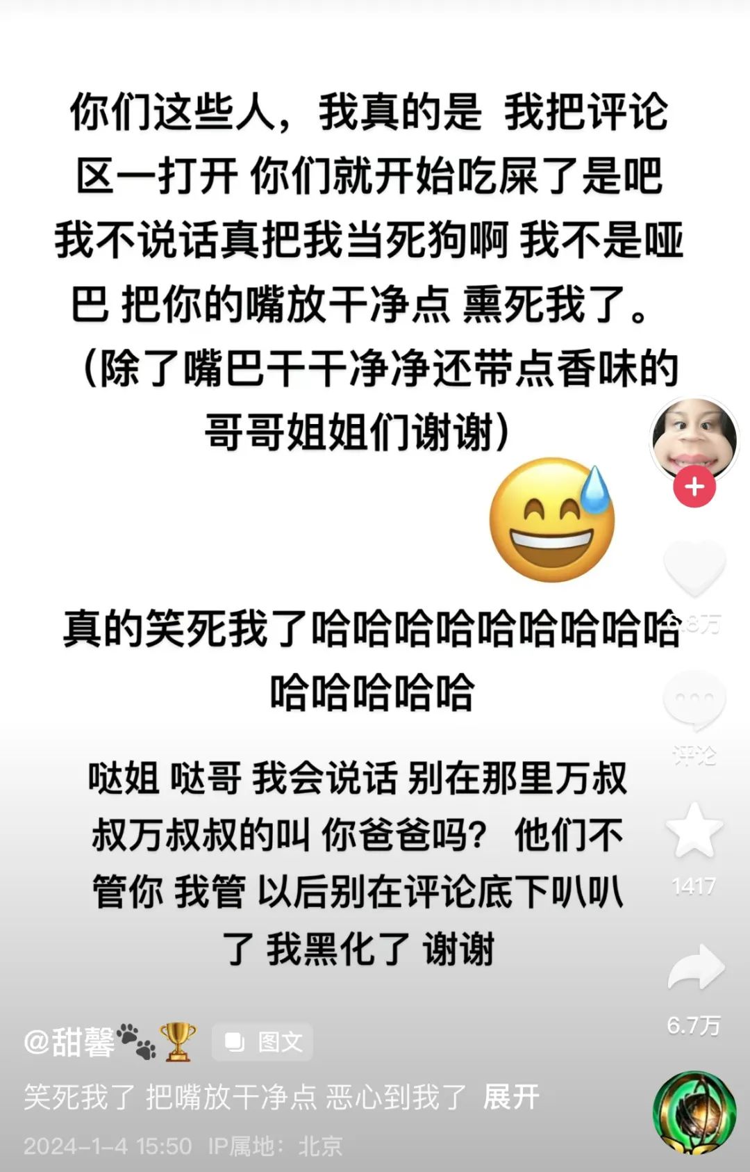 不解气的甜馨干脆又发了一篇声明,谴责有些网友「嘴太脏」: