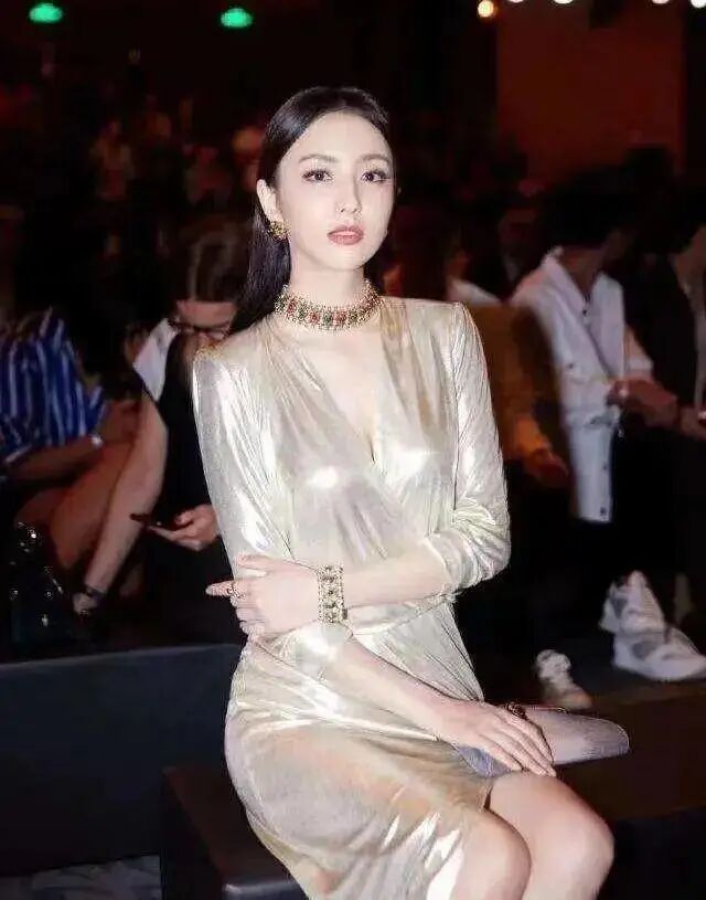 佟丽娅出席活动时,大胆穿着金色无缝裙。裙子的面料像牛奶一样光滑。半透明的裙子加上佟丽娅白皙的皮肤,让她整个人看起来就像是明星一样。美丽的金珠时尚又散发着奢华的气质;无缝裙由于材质光滑,非常贴身,展现佟丽娅曼妙的身材。领口采用了深V交叉的设计,让整体看起来更加性感迷人。一切都是闪亮的。