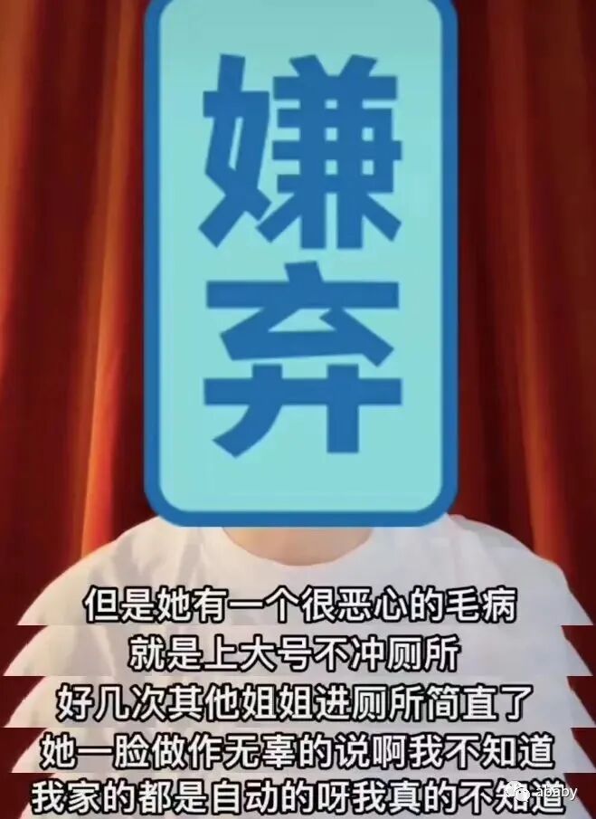 还有住宿的奇葩操作,那就是这位女艺人上大号从来不冲厕所,房间里的姐姐遇到过好几次,结果人家就是忘了,称自己家里的马桶都是自动的,关键是提醒好几次还不冲,这就不是记忆力的问题,而是个人素质问题了。