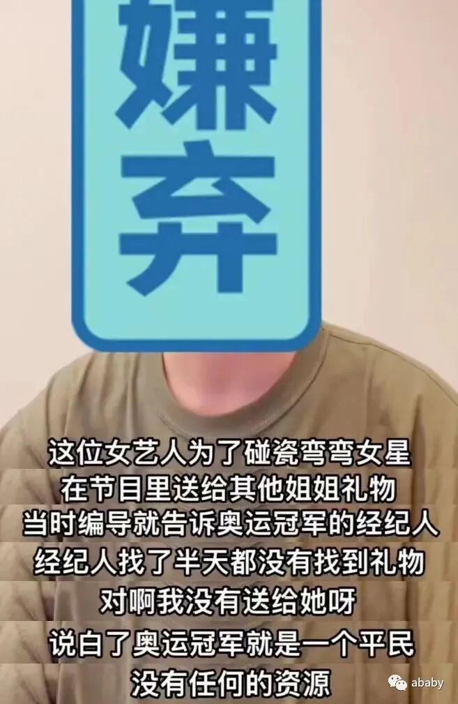 还有该女艺人疑似势利眼,给所有姐姐送礼物唯独落下了徐梦桃,因为人家又不混娱乐圈,没有任何资源,被抓包还大方承认,弄得大家都很尴尬。蹭王心凌热度,在礼物上想写爱你,结果写成“受你”,妥妥文盲。