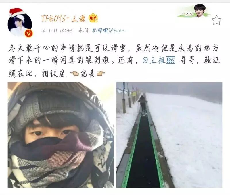 两人还在微博上亲密互动,蓝叔叔放出一张照说像不像源源啊~源源不久就发同款照片认证,超有爱的!