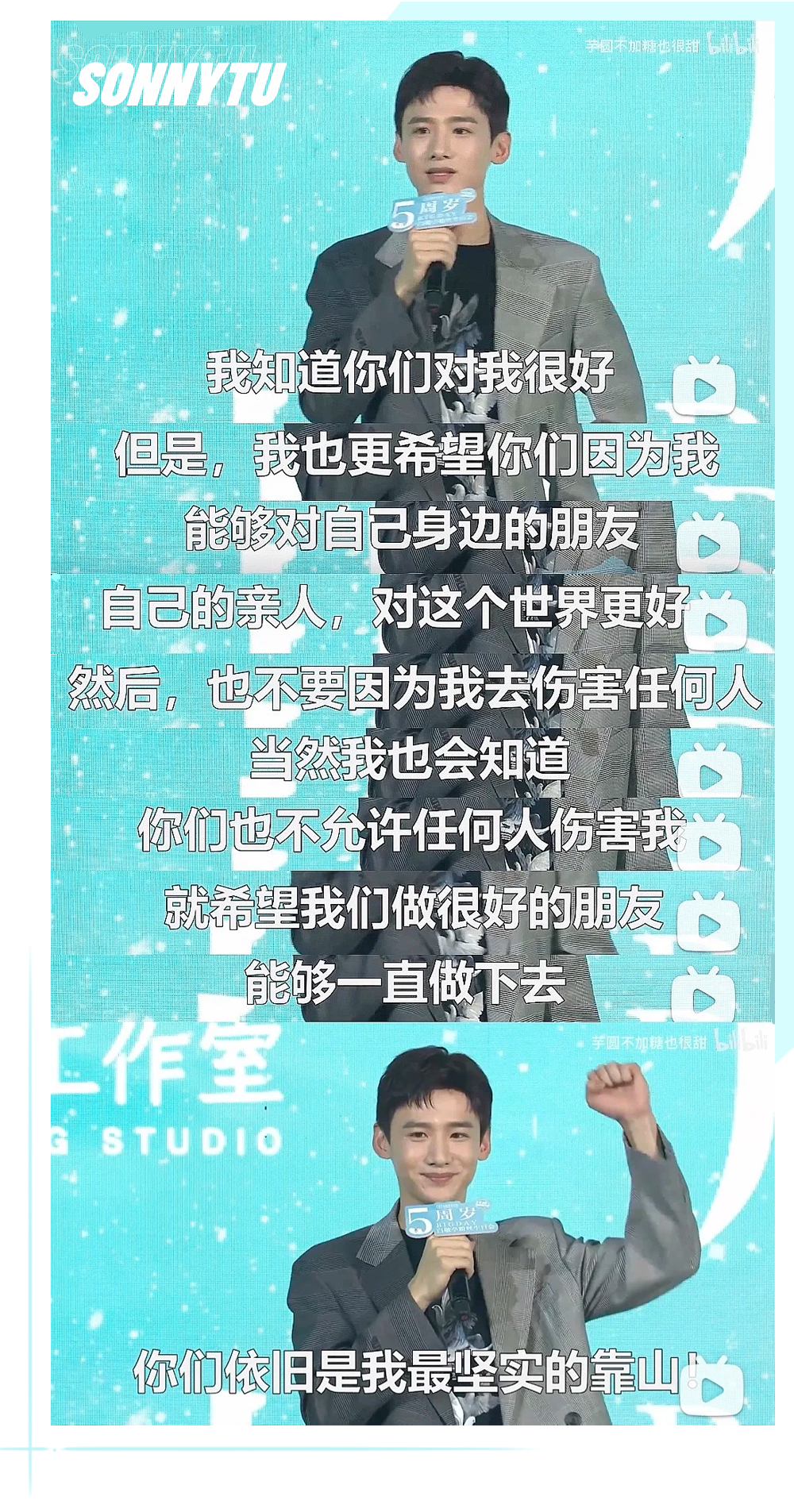 他经常把粉丝比喻成自己的靠山、亲人、朋友。