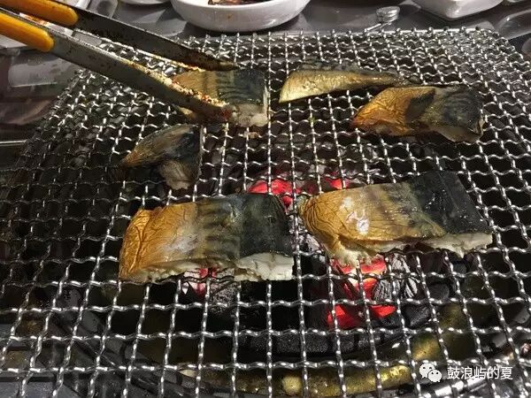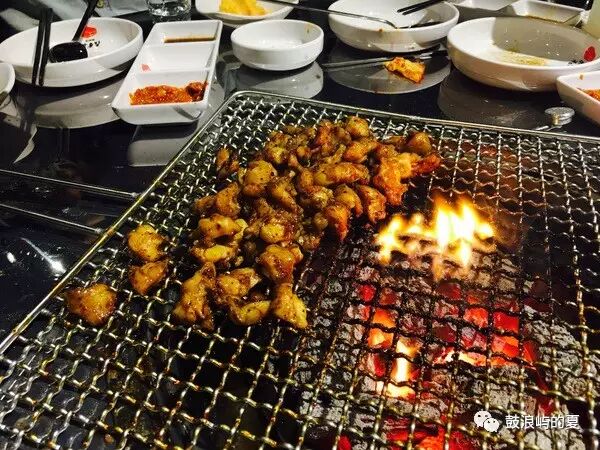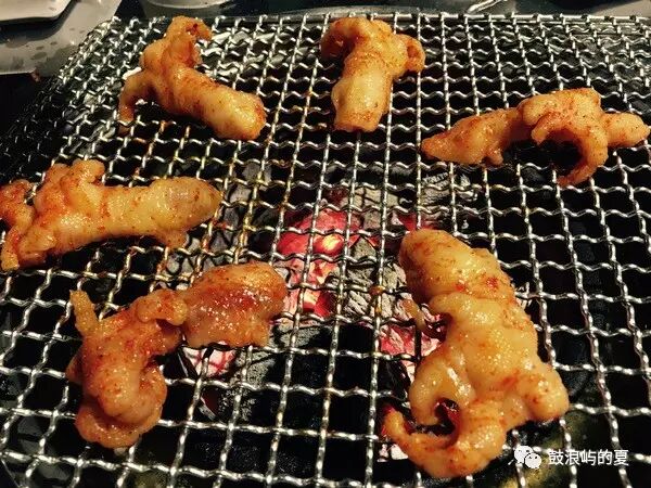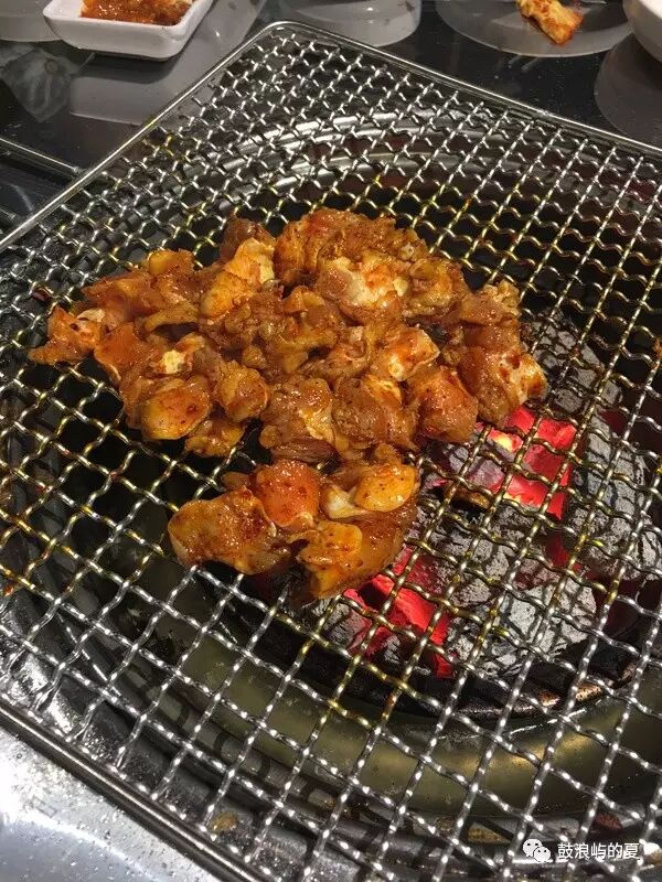 五花肉吃完,服务员马上换了一个烤网,接着是调味猪排,因为是腌制好的,烤完也是剪成小块,非常嫩香。