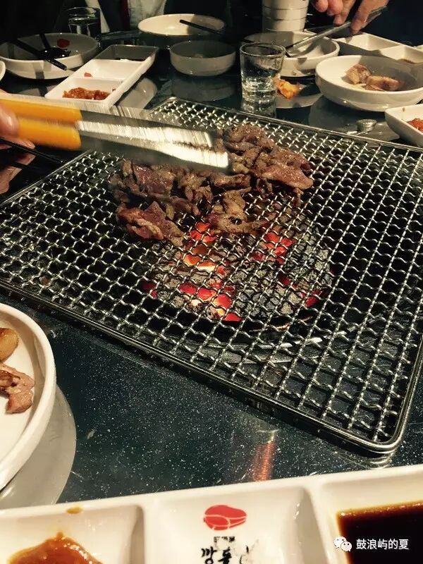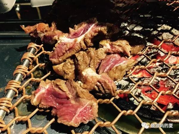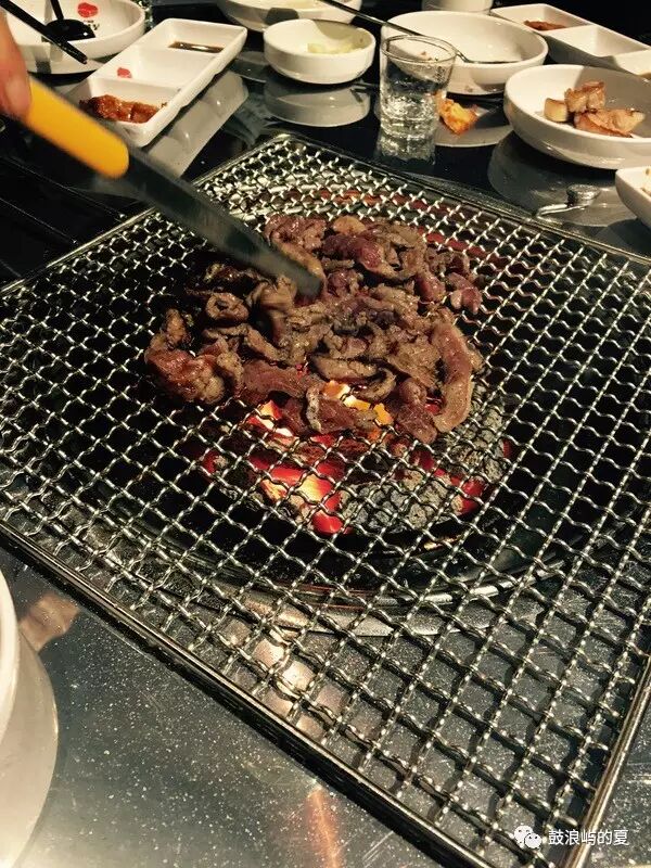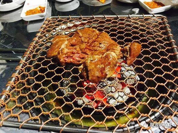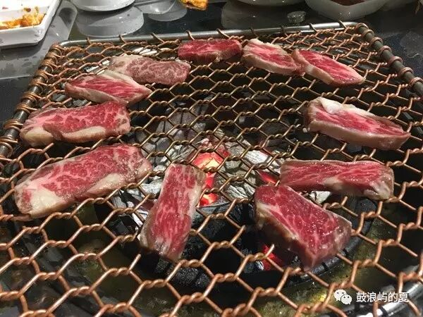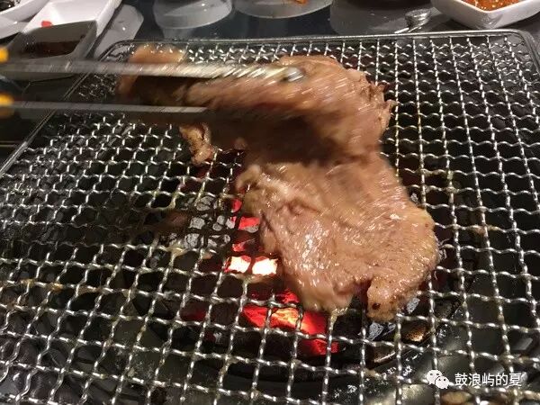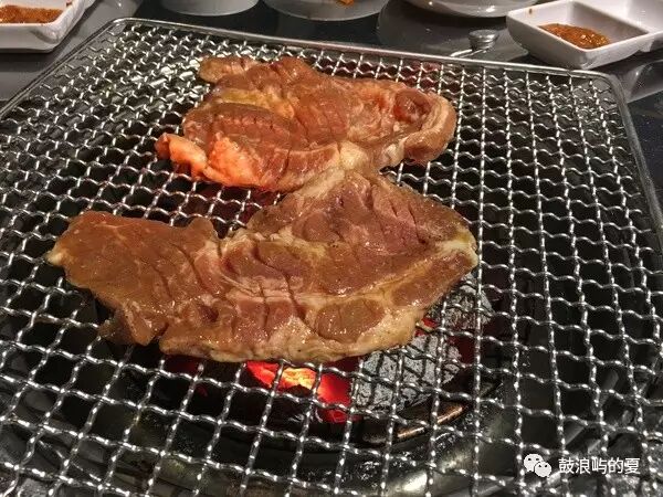 牛五花,有没有发现,烤网不一样了?对了,牛肉一般会用红色网盘烤哦,格子也比较大,因为过火的话,牛肉就老了,机智吗?快夸我,哈。