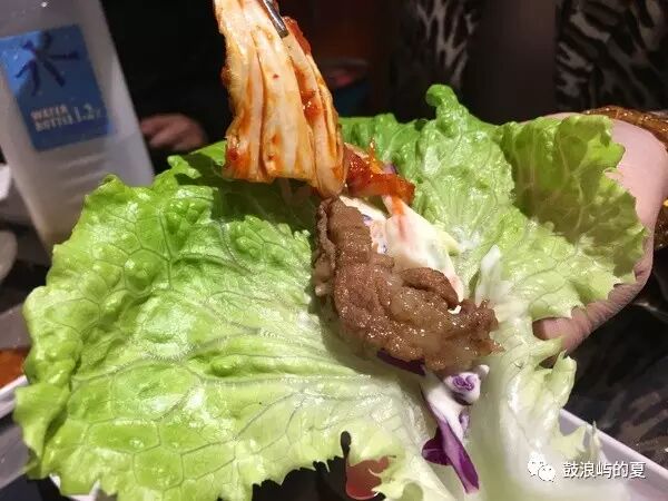 因为它是没有腌制过的,所以可以包着生菜、沙拉、小泡菜,这个看个人的喜好,当然,你要是问我,我会告诉你,我不吃素,我不吃素,我不吃素素素!!!!!!哈哈。
