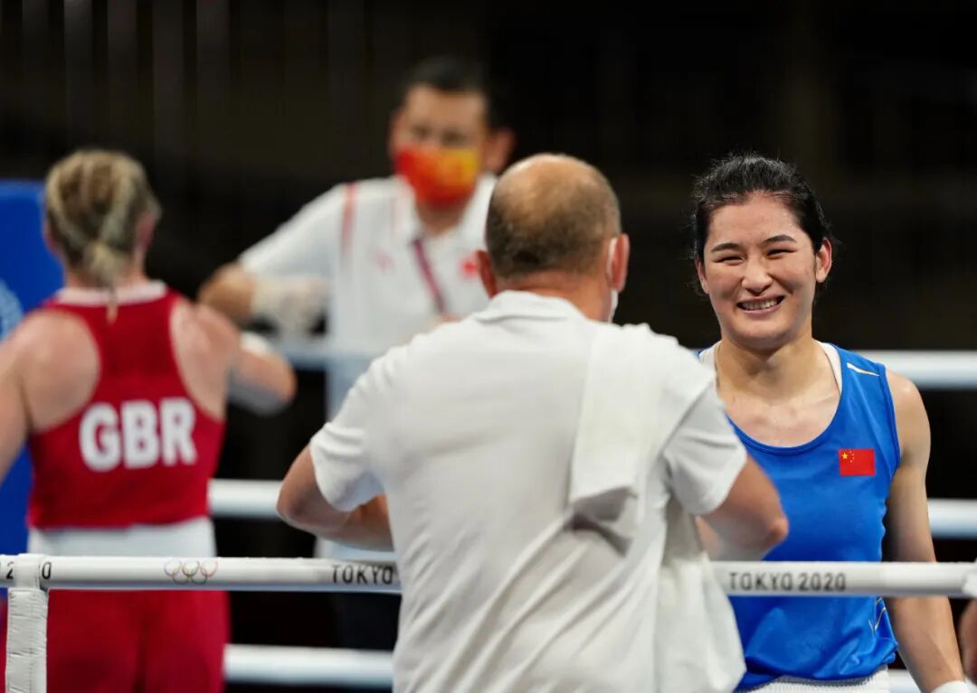 在东京奥运会女子拳击中量级决赛中