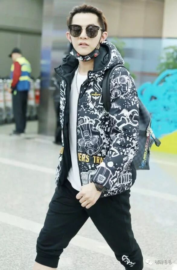 汪东城穿着黑色的羽绒服现身,衣服上布满了白色的涂鸦花纹,给人一种眼花缭乱的感觉。他在下面穿着黑色的五分裤,产生了一种夏装冬穿的效果,很有混搭感。汪东城在里面搭配白色T恤,内搭很是简约低调,完全不抢占外套的风头!