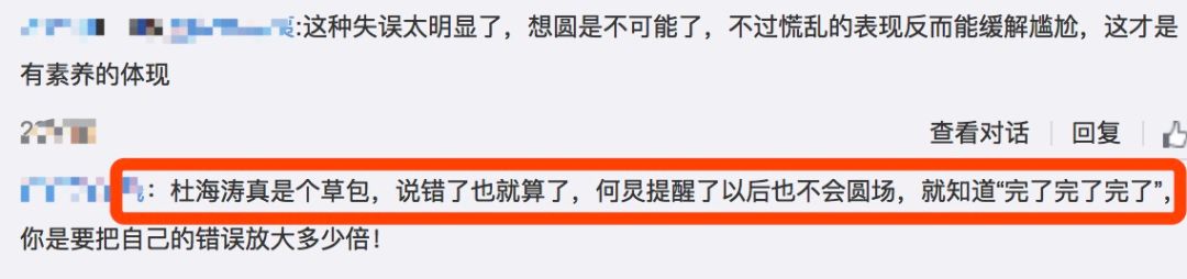口误说错了也就算了,杜海涛救场能力也被不少人吐槽,就知道:“完了完了完了。”