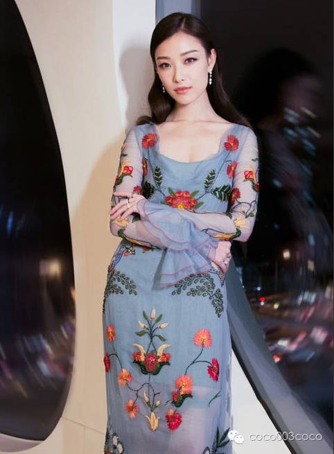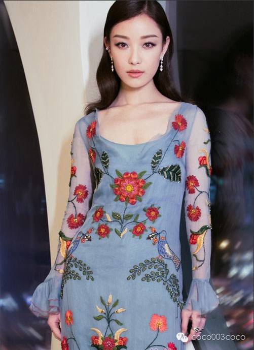 倪妮佩戴卡地亚 (Cartier) 珠宝亮相,搭配蓝色刺绣欧根纱长裙,又一位花仙子来到人间了~