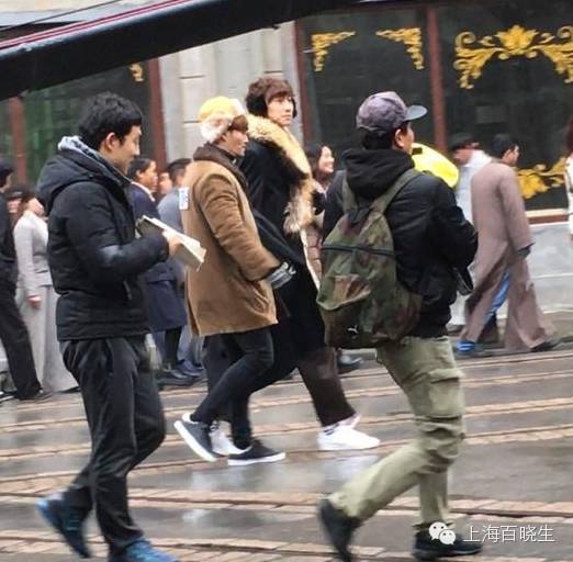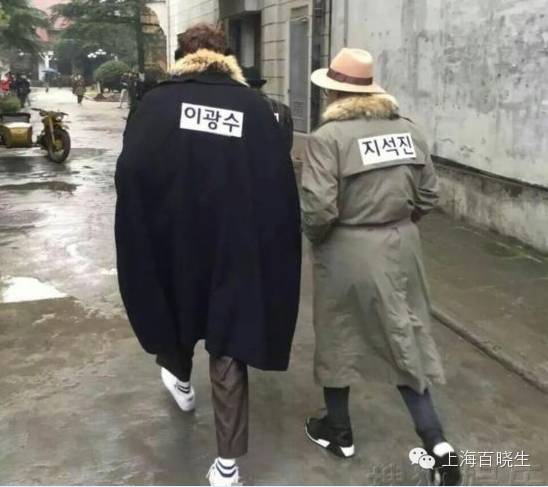 今日,韩国人气综艺《Running Man》成员正在上海影视乐园录制节目,成员们装扮复古。
