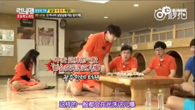 一开始大家都是平稳的过关,直到轮到了光洙的顺序,知道wuli光洙身上自带倒霉属性的刘大神在光洙开始挑鸡蛋时就预言“这样的一般都会在光洙这儿爆。”