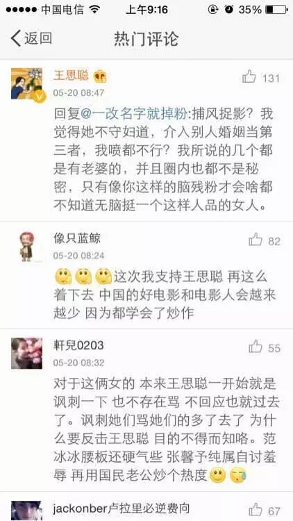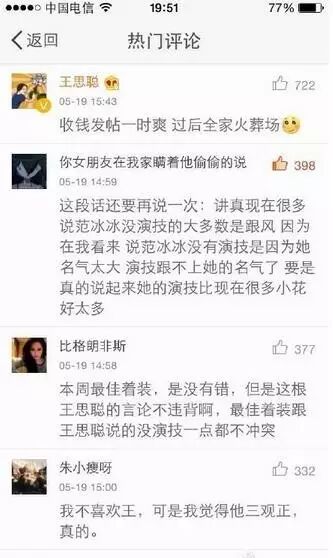 然后范冰冰的粉丝就跟王思聪粉丝上演了一部撕逼大战,王思聪也接着爆料!。小编了解的范冰冰这几年洗白的手段一直一流,从前肮脏的名声不知道从哪年起变成了女神,“范爷,”不知道这种插足逼人家庭,当人小三的事情粉丝怎么看!然后王思聪发大招说道:“收钱发帖一时爽,过后全家火葬场!”