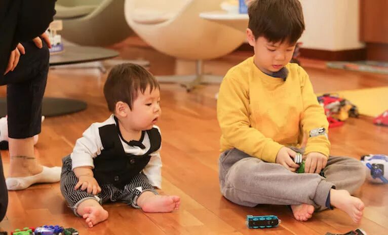 不过哥哥嗯哼似乎更加享受一个人玩玩具的乐趣,而且十分开心地沉浸在自己的世界里,虽然嗯哼才5岁,但是这长手长脚的长得实在是太快了吧,有个长腿爸爸就是不一样。