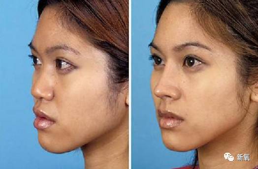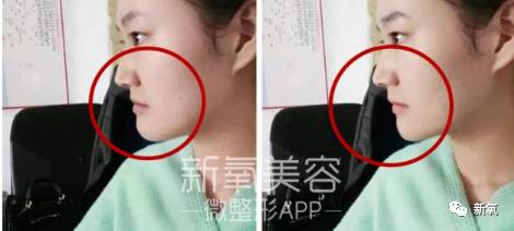 从文章里截了几个图来说明,第一张是如果只给妹纸隆鼻,可以看到右边鼻子高了,可是感觉脸还是瘪瘪的,还有一点瘪嘴对不对?