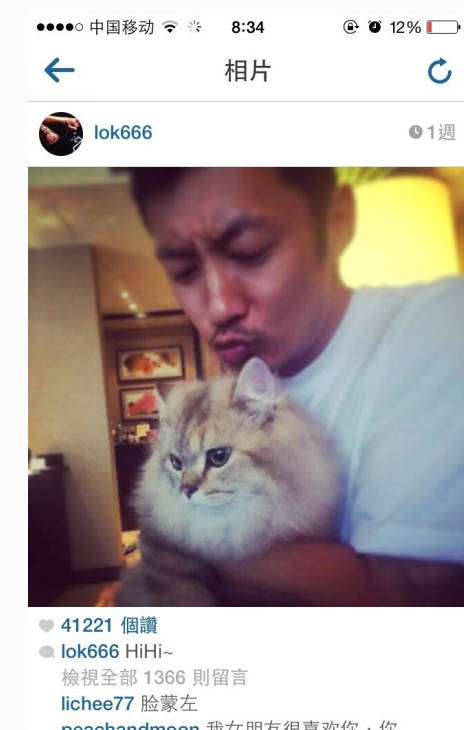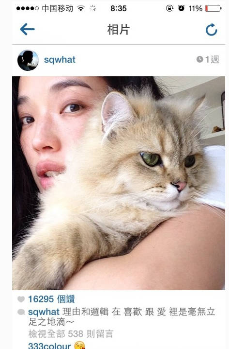六叔在INS上有好多照片也都有舒淇的这只猫