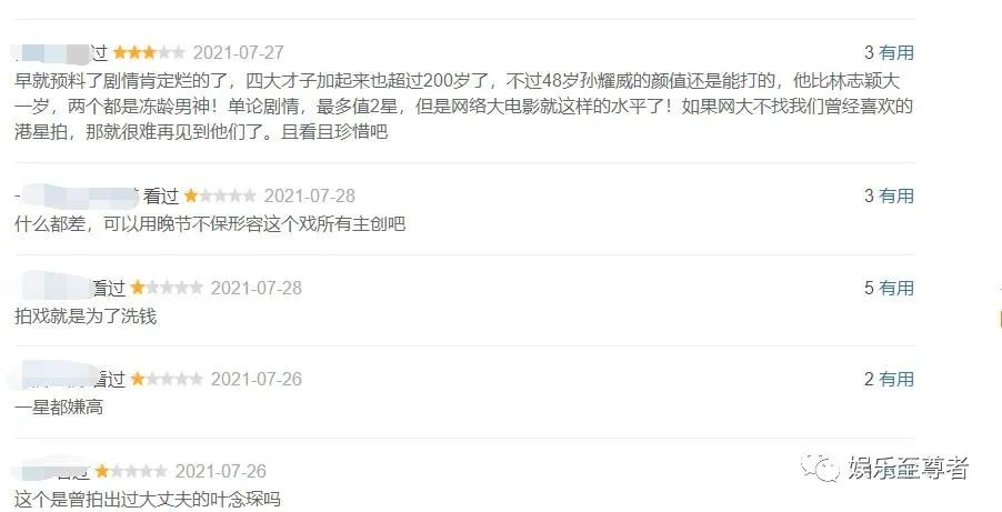 孙耀威作为独挑大梁的男主,宛若并无获取非常高的眷注,反而不如黄金副角黄一山和翁虹。“画虎不成、荒唐好笑、坐立难安、为难不已”的批评层见叠出。不过这些批评是就整体的影戏而言,也即是说,这部影戏并无某一个脚色大概某一名明星借此出圈。固然,它上映的这个时间也短长常分歧时宜,在社会消息和体育消息的断层压抑下,文娱消息近来都没有甚么存身之地。