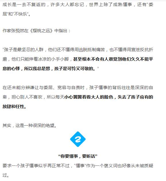 而这种被迫懂事的过程,无论是在小时候还是长大之后或多或少都有负面的影响。