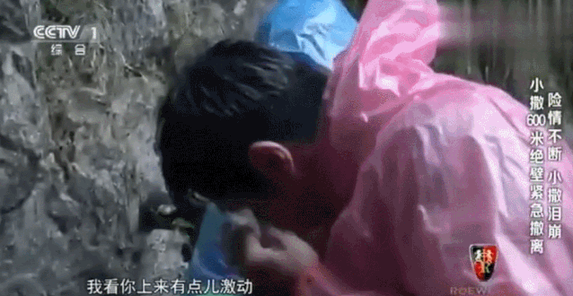节目中,挑战绝壁上清洁垃圾时,撒贝宁却动情地哭了。