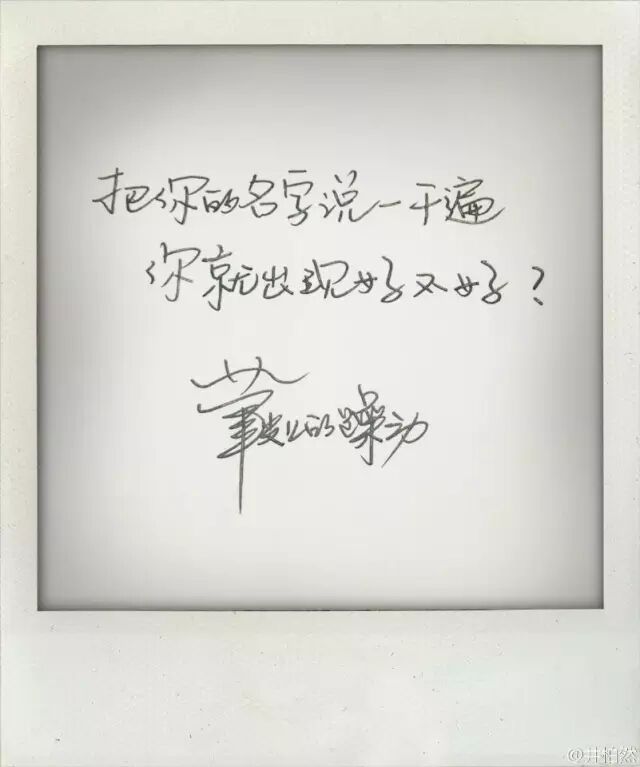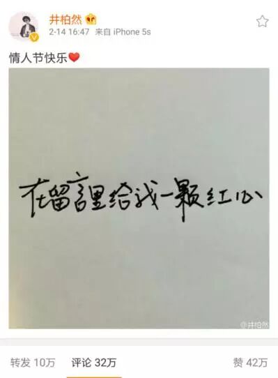 还写的一手好看的字,瞅瞅,情人节那天井宝发的“在留言里给我一颗红心”,说,是不是和倪妮说的。