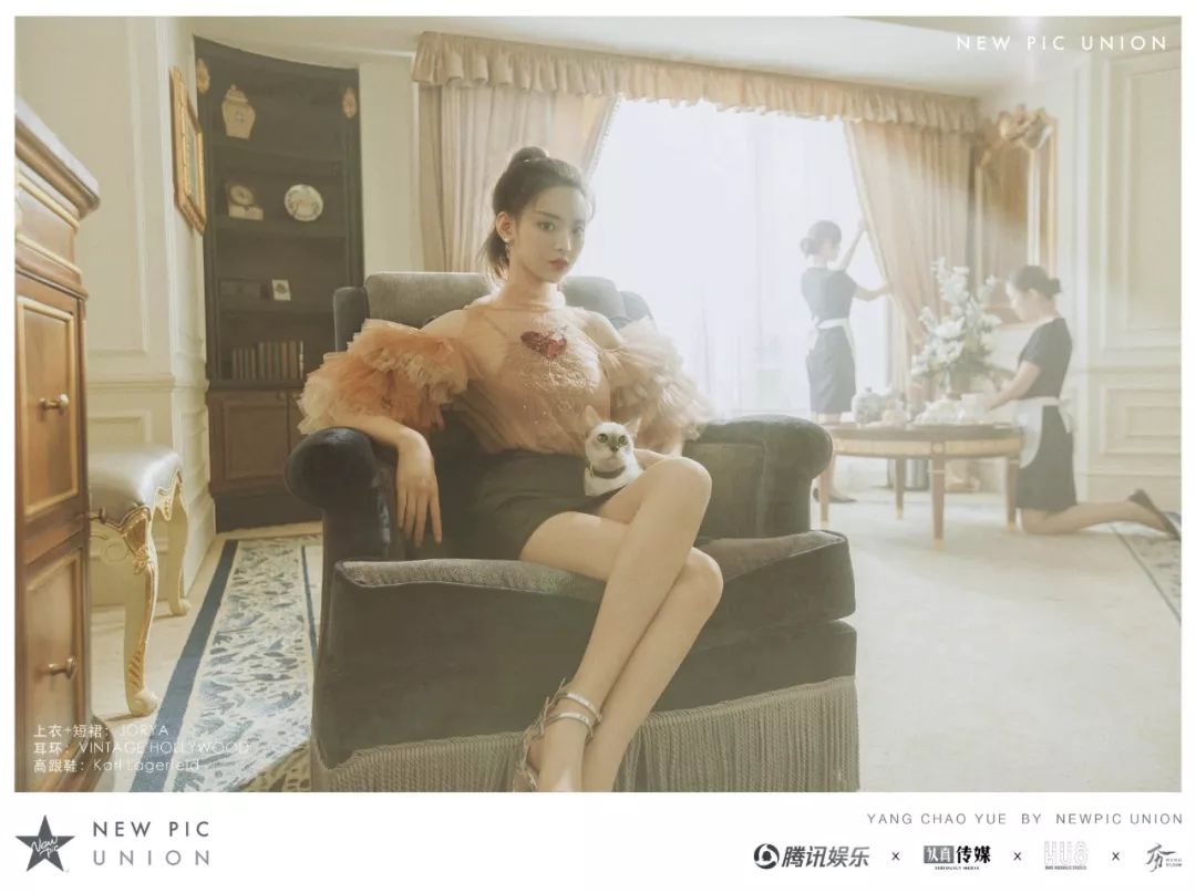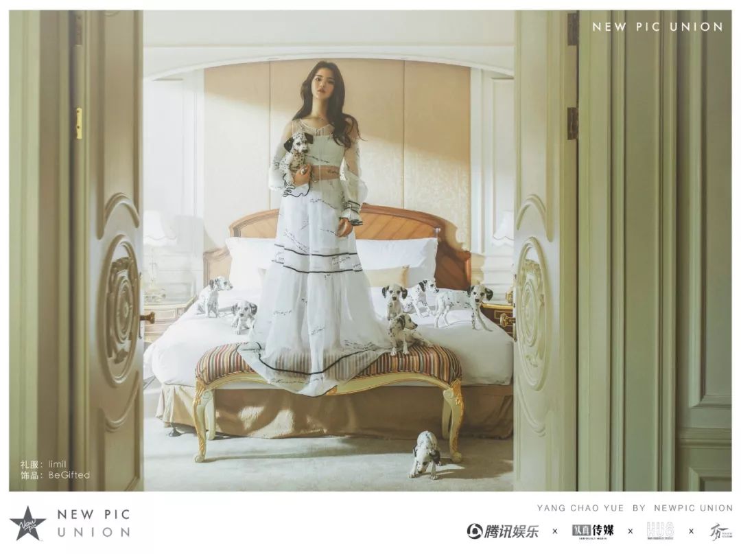 换上长裙,站在镜头前,杨超越随着摄影师的引导做表情,摆pose,不再是几秒前还在和工作人员说笑的小姑娘。