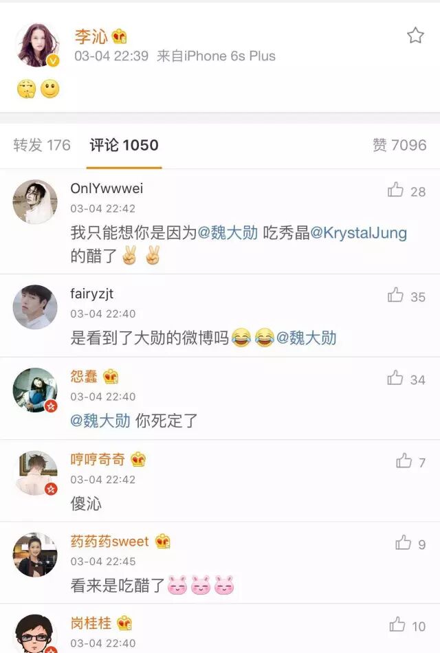 再加上之前郑秀晶开微博时,魏大勋的隔空示好引来李沁的“飞醋”,更是让粉丝觉得甜蜜炸了!
