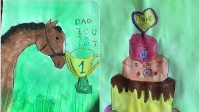 李嘉欣也只是秀出儿子的画作,例如这张父亲节卡、以及嘉欣在生日收到的大蛋糕和花束图画,全都是出自小JM的手笔哦!