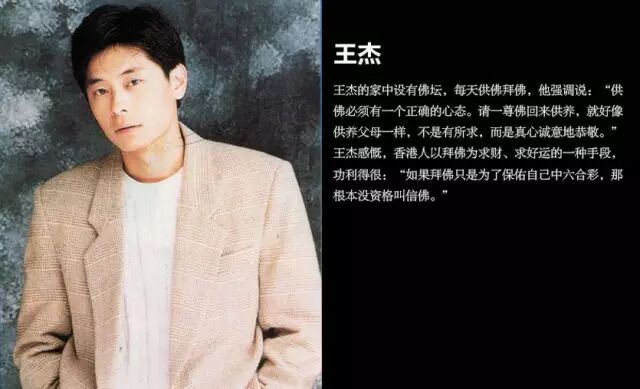 王杰的家中设有佛坛,每天供佛拜佛,他强调说:“供佛必须有一个正确的心态。请一尊佛回来供养,就好像供养父母一样,不是有所求,而是真心诚意地恭敬”。