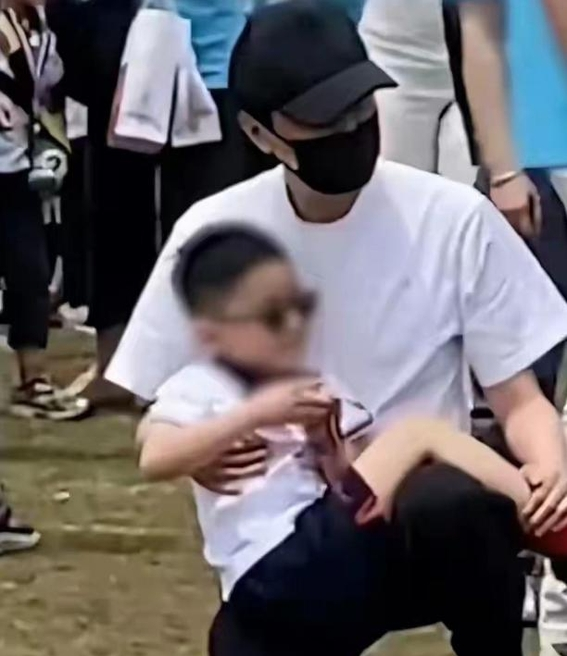 冯绍峰被拍到雨天撑着伞,蹲在地上给儿子系鞋带!