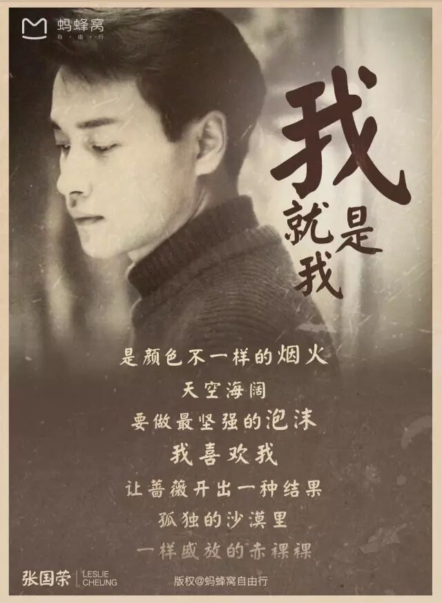 “我行走江湖余年以来,一路披荆斩棘,经历无数艰难险阻,亦收获无数。但是自始自终,我所追求的,在我而言最骄傲的既非功名,亦非利禄,而是,我,张国荣,自始自终,都仍然是张国荣。”