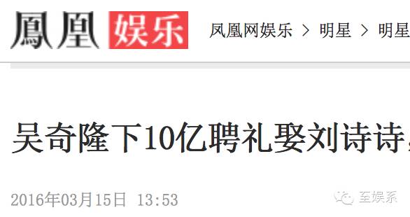 然而像是为了打八卦群众的脸,这次大婚前就有新闻称吴奇隆用十亿聘礼迎娶刘诗诗,不可不谓壕。