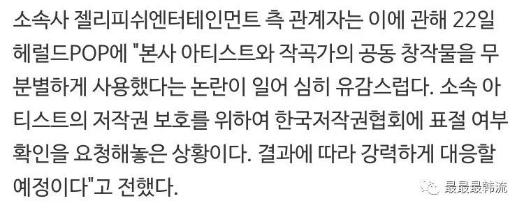 为了保护所属社的制作权已向韩国制作权协会对于是否抄袭递交了确认申请,会根据结果做出强力的回应。