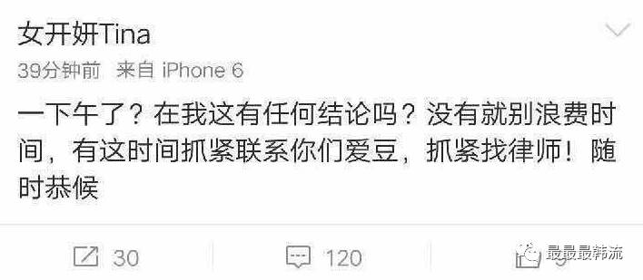 刘心的妻子也表示自己恭候粉丝抓紧时间联系爱豆抓紧时间找律师…完全是随时可以上法院的架势。