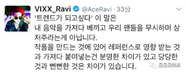 可能是这个抄袭事件闹得太大了吧…VIXX的成员金元植在今天更新了自己的推特并发表了对这件事的看法。