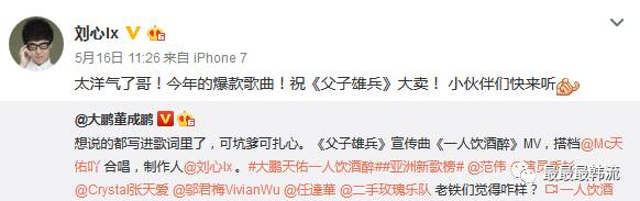 刘心这几天发表了一首叫《一人饮酒醉》的歌曲,从官方资料可以看出,他是这首歌的制作人。