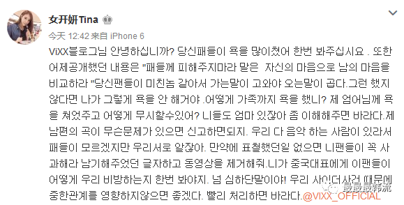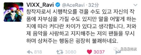 然后艾特VIXX的官博要求官博管理粉丝?不要影响中韩关系说VIXX的粉丝是狗崽子啥的…
