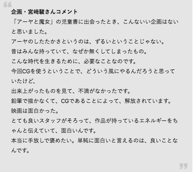 此前《阿雅与魔女》日本曾定档4月29日上映,却因为疫情取消,目前最新上映时间还是个未知数。不过无论反响如何,宫崎吾朗只能在这条路上继续走下去了。