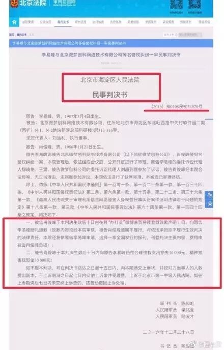 近日李易峰胜诉的消息又被刷上热搜,小约一看事情并不简单,这件事早在2016年年底,就已经经由海淀区人民法院判决李易峰方胜诉。