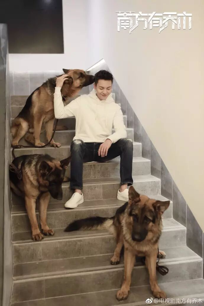 今日陈伟霆担当男主的电视剧《南方有乔木》剧组公开陈伟霆的新剧照,照片中,陈伟霆坐在楼梯台阶上,和狗狗亲密互动~暖暖的等等是不是很像在坐等女朋友下班的好男友~