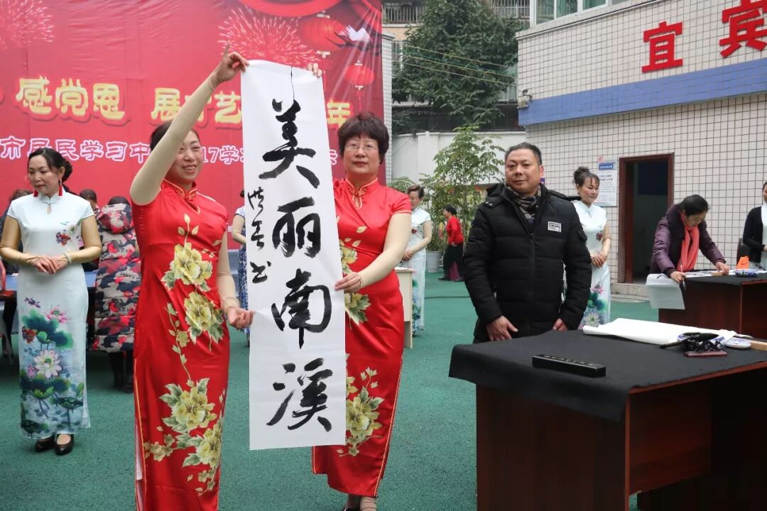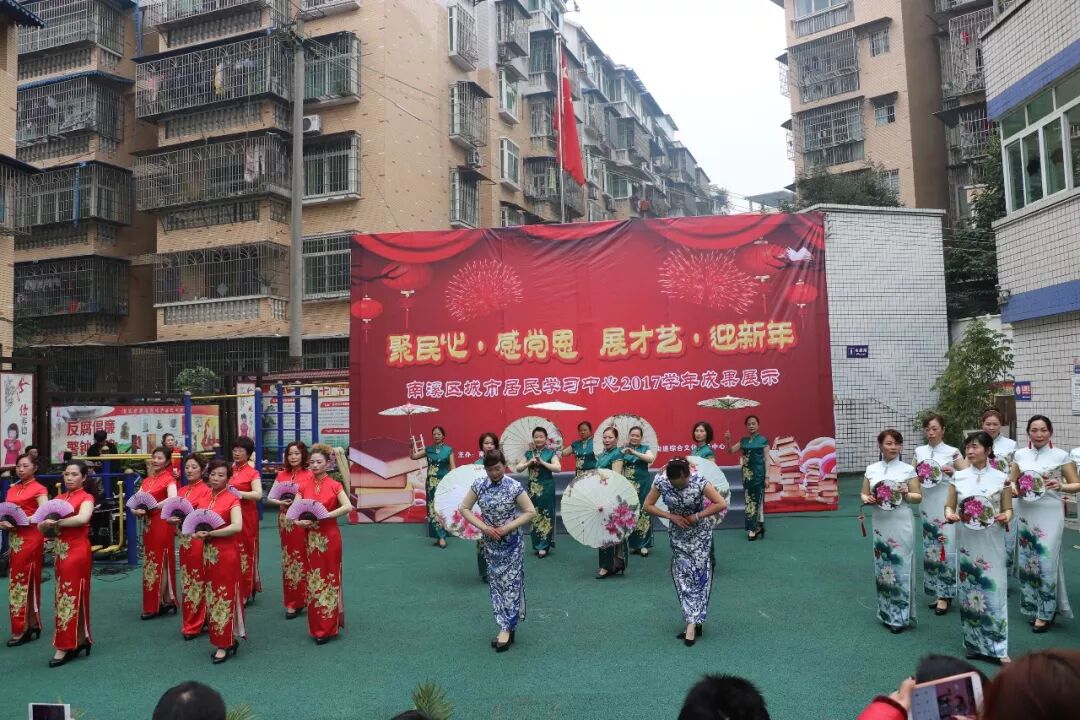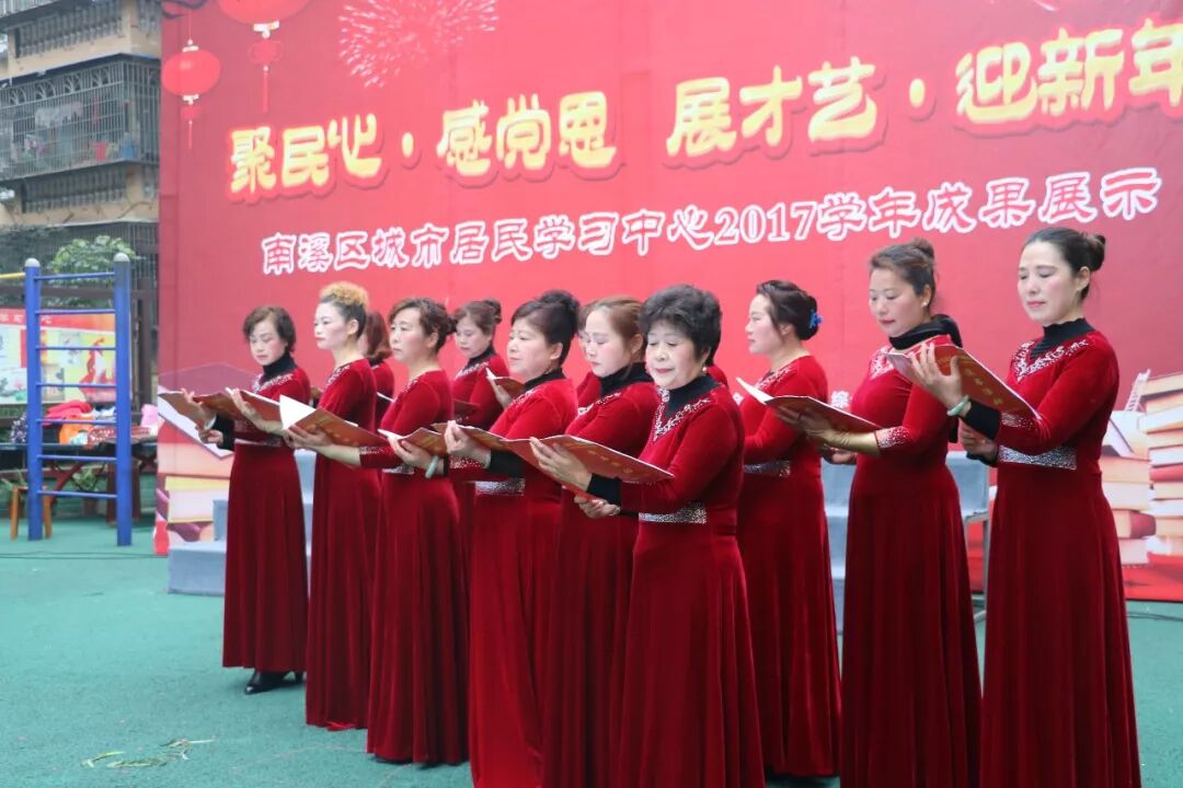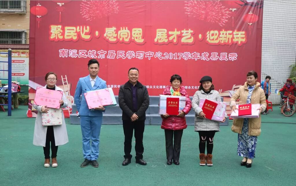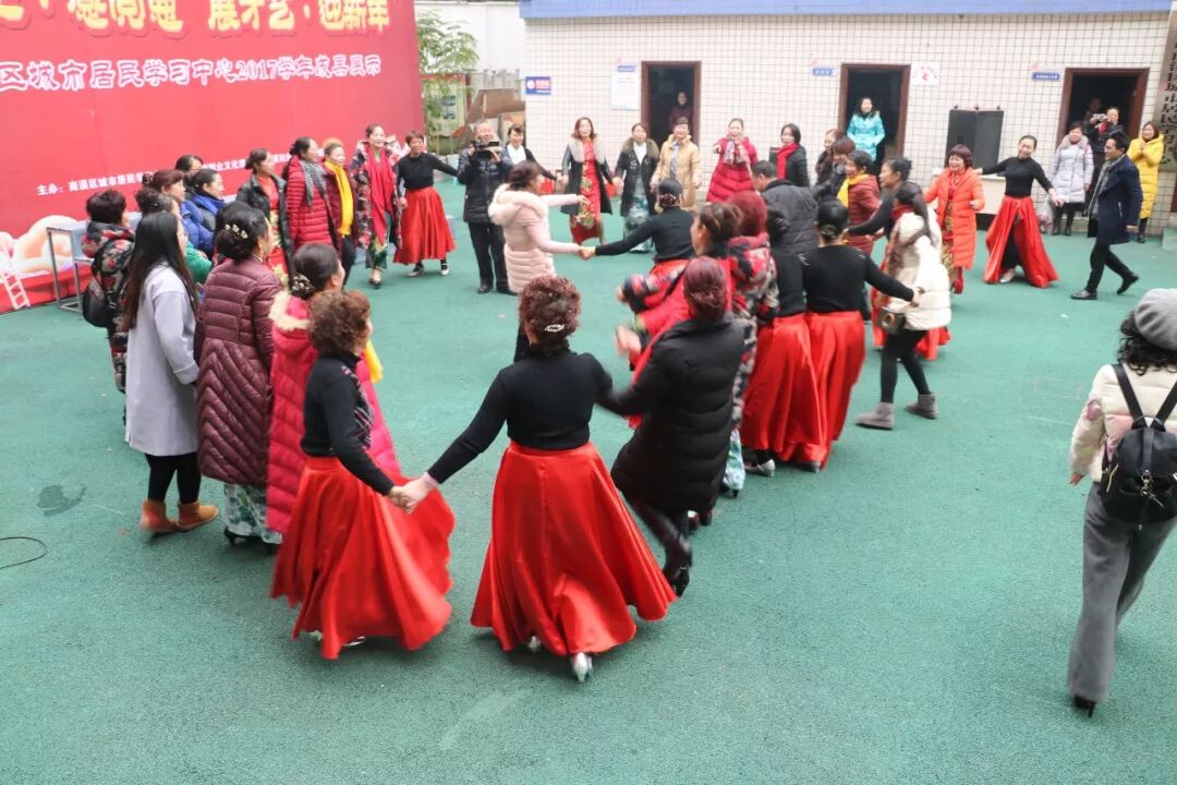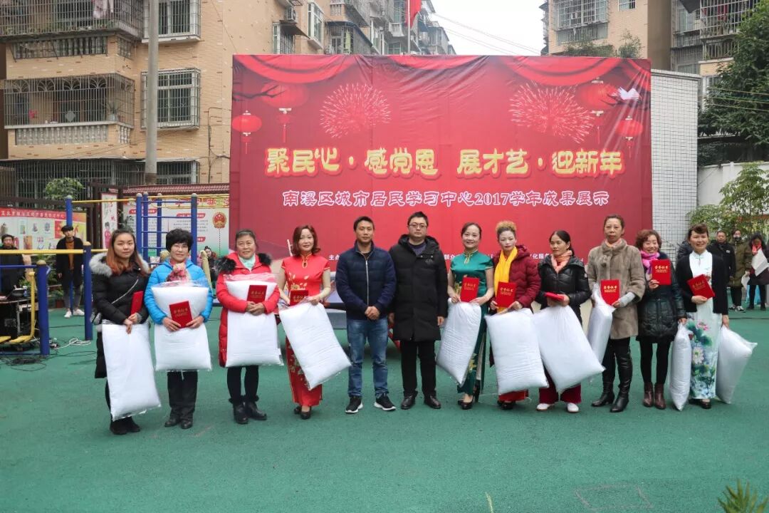 为了更好活跃居民群众的文化生活,提高居民的文化素养,展示南溪区城市居民学习中心2017学年教学成果,1月12日上午,“聚民心·感党恩 展才艺·迎新年”暨南溪区城市居民学习中心2017学年成果展示汇报演出活动在南溪区城市居民学习中心举行。