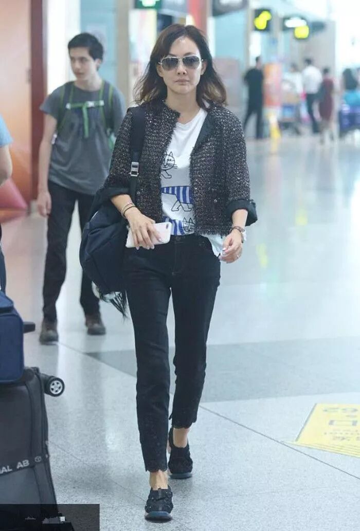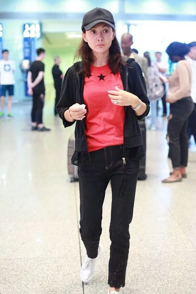 不得不说牛莉保养的真的是很好啊,即使是普通的t恤配着长裤依旧能看出腰细腿长,肤白貌美,这样脸上沧桑的痕迹已经很明显了,但是身材却依旧好到让人羡慕了,简单的衣服都显得很有魅力。