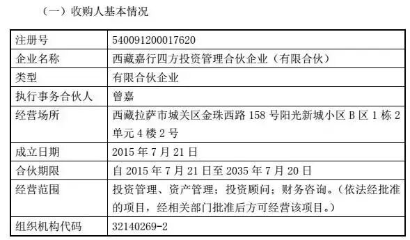 2015年9月29日,西藏嘉行以1.7元/股低价参与定增+协议转让借壳新三板上市公司西安同大,西藏嘉行持股37%为西安同大第一大股东,曾嘉、杨幂为首的管理层正式入主。