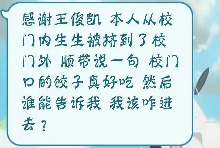 后来才知道,有人把“王俊凯来了”,听成“校门开了”……